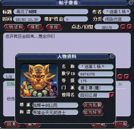 "迷离ξ杨ル在区里发的离别帖子.其实谁都不想离开自己热爱的游戏,只不过遇到了奇葩人士,不喜欢闹的就只有安静的选择离开。