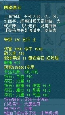 130时代的神器,这样的武器在2005年-2007年的梦来说,是神一样的存在。在早期跑人环只有出130书的时代,140的武器基本上是属于熊猫一样珍贵,150的就更是见都没见过.所以追求一个130的极品专用武器成了每一个大唐和狮驼岭玩家心中的梦想。但是现在已经很少有玩家还在打130武器,服战级别的输出系更是极少用130的.