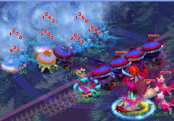 PK开地阵给人的感觉就是猥琐,脱脱队.但是昨天晚上百花村打破了这个传统观念.在对战如意岛的跨服,百花村开地阵.盯着对面鸟阵克地阵的压力.硬是在30回合内吃下了对手.其中百花村的LG超级变态.被克阵+没阵法提升的情况下群秒依旧破千