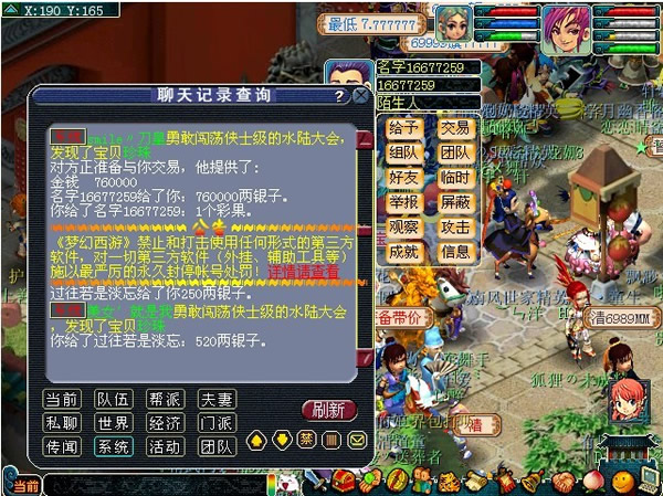 今天在区里在看帖子,旁边有个收彩果的,说67W收,我交易,他居然给76W。我笑死了一直以来我都是买卖被黑,摆东西少个0,物品上错价,没想到我居然还能在梦幻生涯里当一次小黑人。