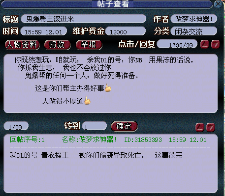 因为自己接的代练号被杀,沧海刷鬼爆的帖子(求神器是本区出名DL,何况坐拥实力号。只要配合得当,鬼爆天科有危险)