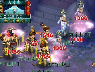 方寸山,点选目标1546,其他的1156,有飞行的怪物1300