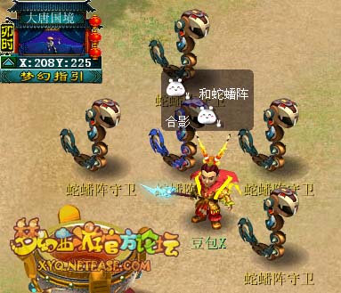 首先,豆包来到了 蛇蟠阵(大唐国境 208,225 附近) 处