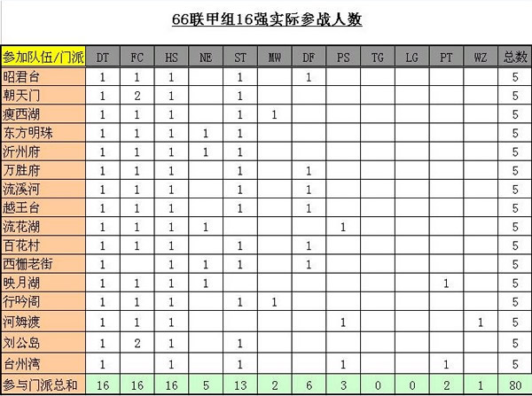 简评: 66联,龙宫,天宫灭门,仙族门派在80人团队里只剩3个。占 整个梦幻3分之一的法系,除了两个魔王外,都死亡。也许这就是策划希望看到的吧。 FC,DT,HS,几乎场场必上,STL紧跟。其他门派点缀,这就是策划的理想境界吧。 对策划的高明,我们不愿评论,其眼光应该有独到之处吧。 龙宫门派在2011年成为服战最垫底门派后,希望2012年也光荣继承。