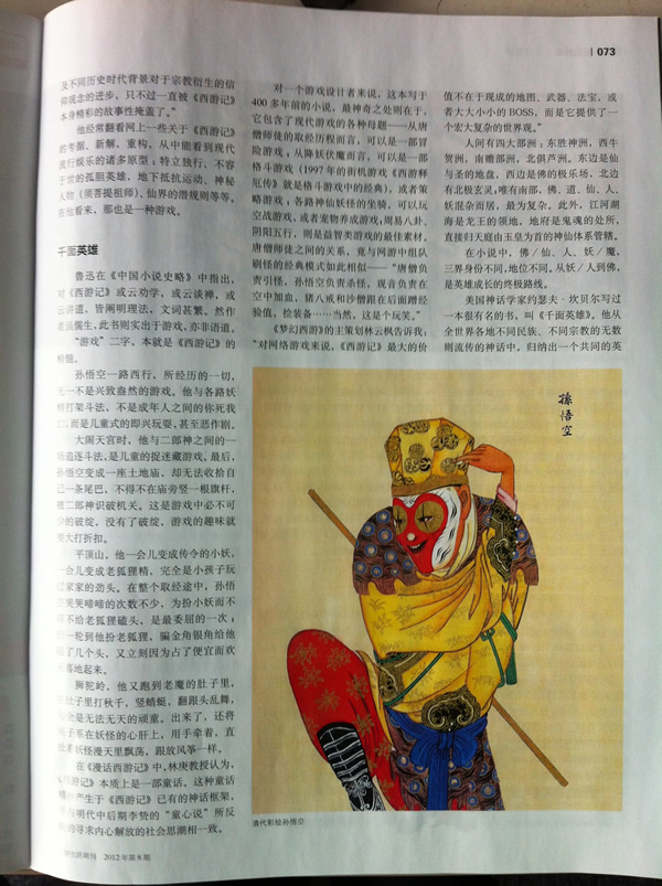 他经常翻看网上一些关于《西游记》的考据、新解,重构,从中能看到现代流行娱乐的诸多原型:特立独行、不容于世的孤胆英雄,地下抵抗运动、神秘人物(须****)、仙界的潜规则等等。在他看来,那也是一种游戏。