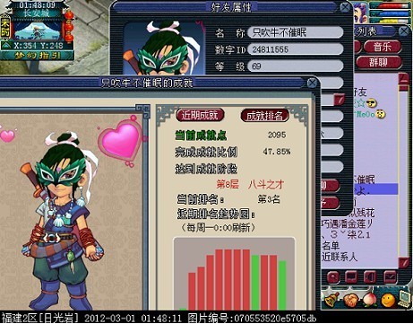 日光岩强大精锐玩家,69的级别就破了2000成就.梦幻西游成就系统开放之后,越来越多的玩家开始热衷于刷成就点数,从最初的1000到2000,非常期待首位3000成就点玩家的问世。