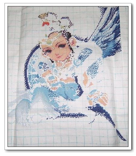 更值得佩服的还在后头,每个点的刺绣都需要下两针才能完成,除此之外计算格数、换针换线也得花很长时间,要绣出一张漂亮的十字锈,这些梦幻MM们得有多大的耐性啊。以下的舞天姬虽然没有完工,但可以想像它完成后的精致和漂亮,也可以想像绣出它的MM又是怎样地心灵手巧。