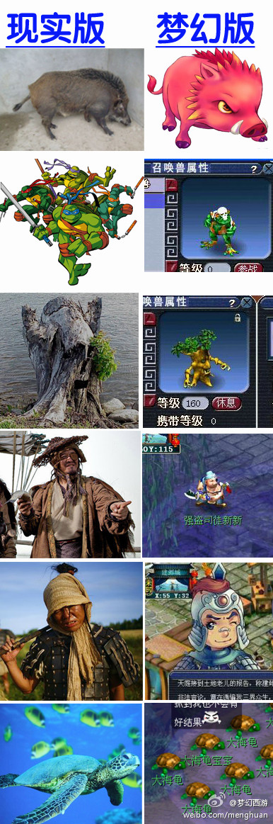 你是否会在玩梦幻西游的时候觉得某些npc非常的眼熟,其实梦幻西游中很多东西都可以在现实中找到对应的参照物,下面就是部分对照物。