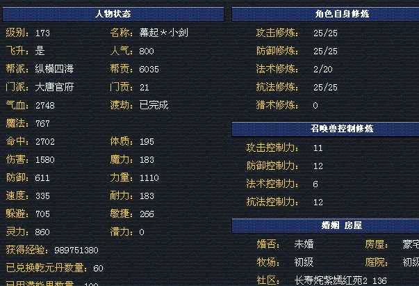 该人物。体质195点。气血2748 腰带0气血强身140。。根据体质及腰带计算气血应是2580