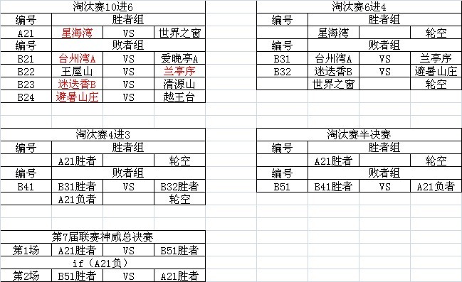5月16日,周3,淘汰赛6进4对战表如下,所有场次主客将由双方抽签决定。