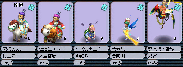 五庄观副本:单环任务(任务时间:180分钟 参加级别:≥70级 参加人数:5人),本攻略测试等级与门派如下图所示: