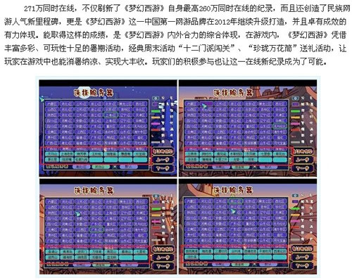 当然了,在线人数还能往上冲,就证明了这款游戏依然还有很强的生命力。尤其是在2011年的夏天。连续的新高遭遇到了一次不小的下挫,也是这一年,DNF的最高在线量达到了265万,穿越火线更是率先创下了在线人数突破300万的记录。梦幻西游的位置一下子就排到了第3位,多开冲击在线人数的作法,终于引来了最强烈的质疑声。不少人也就此论定,梦幻西游的下坡路终于来了。