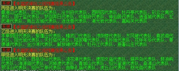 鼎湖山、武当山、沧州府、圆明园、牡丹亭、彩云之南、国子监、梦回奔日、成都府、神仙居、逍遥城、玄武湖、商丘古城、迷迭香、湖光岩、嘉峪关