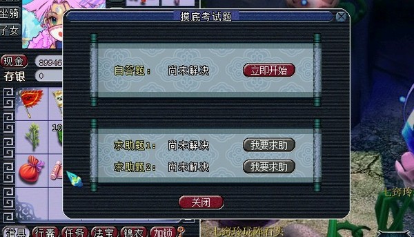 第二道题和第三道题是求助题。会求助帮派和门派的玩家帮你答题。