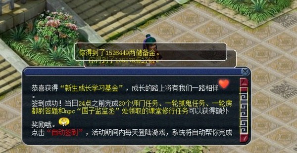 童鞋们可以去长安城(307,,200)国子监监丞领取连续签到奖励。