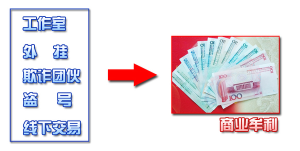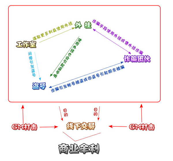 工作室、外挂、线下交易、欺诈团伙、盗号销赃,以上几种违规的游戏行为,最终的目的,即是通过这些违规行为获取钱财或者与钱财相关的利益!因此都有可能涉及商业牟利!
