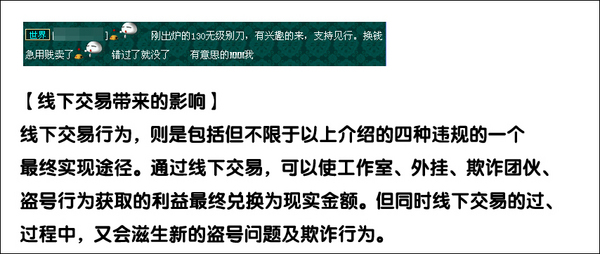 小胖收集到一些比较常见的相关特征,如上图GM打击的节点涉及各个环节;而违规者们呢?他们则会利用各种方式牟利,然后想方设法通过线下交易的渠道兑换成现金。