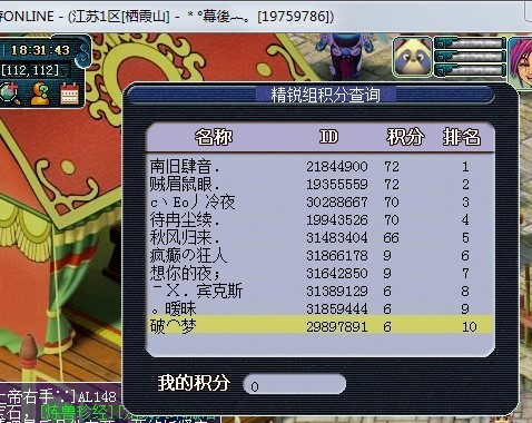 有人说比武时一个区人最多的时间,这明显是错的.看这个区,比武6分都可以上排行榜。有人能猜到这是哪个组别的比武排行榜吗?