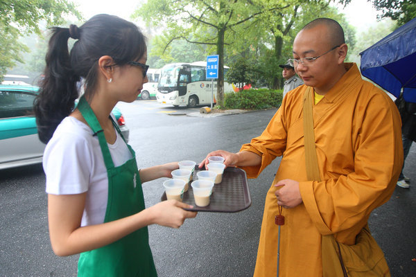 有网友发微博吐槽戏谑,在灵隐寺开星巴克,咖啡都可以改名了,比如卡普吉诺改为看破红尘,摩卡改为达摩,拿铁改为般若,星冰乐改为空即色……厕所叫六道轮回。续杯叫回头是岸。取咖啡台叫超度。背景音乐是大悲咒。进门服务员就喊:施主您点了一杯看破红尘,请到超度那里取。然后来客默默烧了一张纸就当付款了。虽然言论不无调侃,但足见大家对星巴克进驻佛教寺院的排斥和抗拒心理。