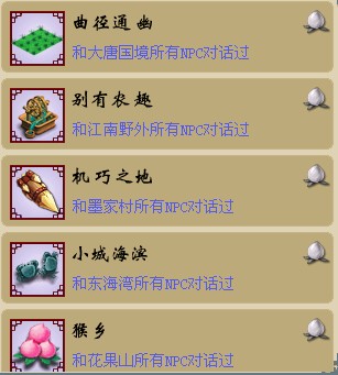 小地图:200 梦幻精灵:200 和游戏里的任务对话:200 升级:200 我的百宝箱:600