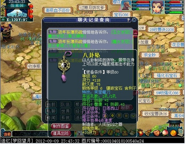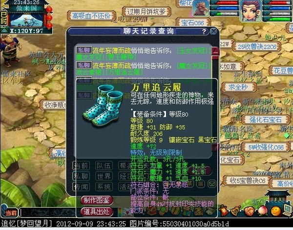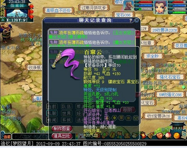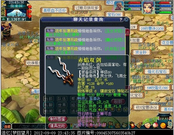 此人两月多前转入望月,和区里第一龙宫结婚达到信任,两月后再假意说刷成就和他离婚,再通过跨服为借口,通过龙宫的面子跟区里很多69借走了装备宝宝,外带骗了一个妹子的号,跨完服,立刻下线,不过现在东西已全部追回,妹子号也找回,他是个职业转服的骗子,下面暴光他一些资料,希望大家小心。。。。