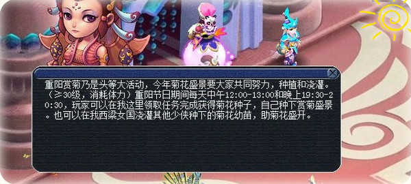 5、重阳节活动于10月19日12:00在部分服务器测试,10月21日12:00——10月24日12:00在全部服务器放出。