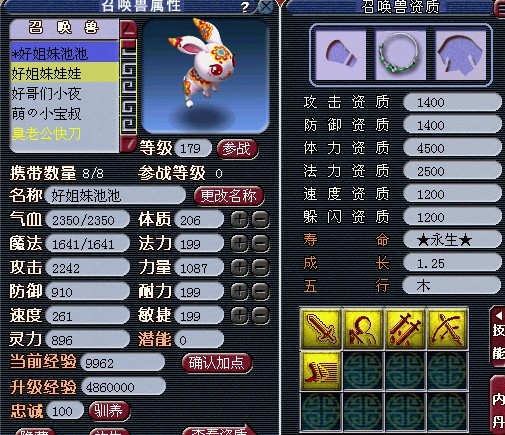 六月阿呆买号。在他号买个泡泡。结果泡泡180级了,还是解不了锁。无奈,又买了只。八只神兽一直是我的梦想。只是在海纳要凑齐喜欢的,时间要久。阿呆,这回你随便转,我不用急了。哈哈。