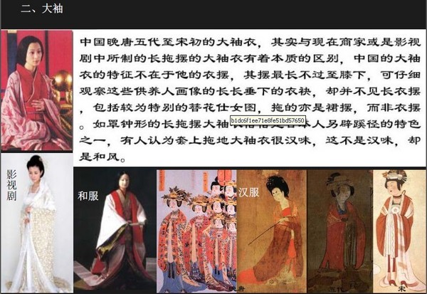 网友对这个民间定义的解释是:汉民族传统服饰的简称,主要是指明末以前,在自然的文化发展和民族交融过程中形成的汉族服饰。