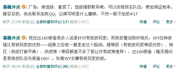 梦幻西游知名点评大师-暴躁外皮近期更新了自己的微博。久未涉足微博评论的前2连冠指挥,对于新出的160装备发表了自己的看法。