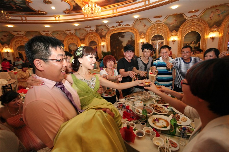 这是一场属于梦幻西游的主题婚礼,霸气的新郎和美丽的新娘敬酒中