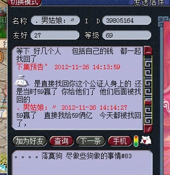 昨天晚上 落寞狗约59队伍生死 2V5 要求对面59的不开阵 结果自己这边药BB全没了 狼狈的被杀出 因为赌金是给公证人(一个FC身上) 结果后面全部被落寞狗找回了。截图证据一切都有 稍后上证据