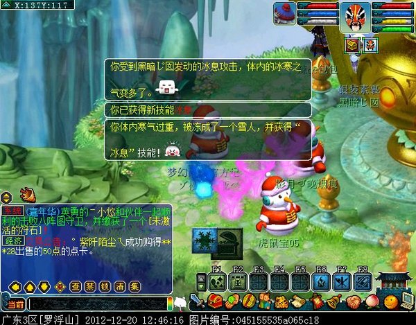进入活动场景后随机变成雪人,或火焰的形象,并获得相应的技能,”冰息”或“炽气”