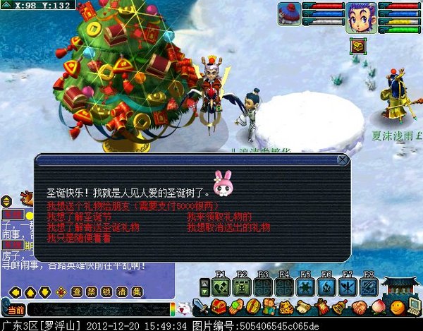 欢乐的圣诞节不能少了圣诞树的装点!圣诞节期间,圣诞树将会出现长安城、建邺城、朱紫国、西梁女国、宝象国的热闹位置。如果想要给你的至交好友送上一份精致的礼物,让他(她)惊喜一下,开开心心地渡过这个美妙的圣诞节,圣诞树就能帮到你!