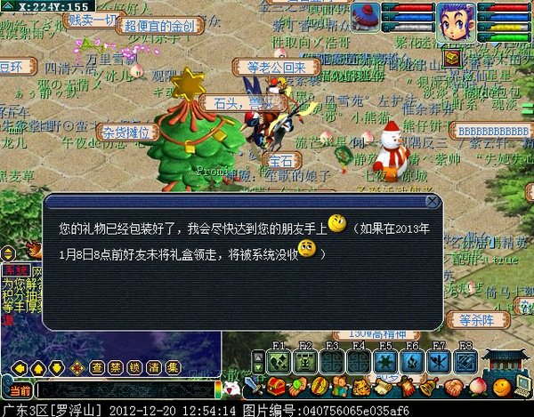 寄送成功则会见到上图提示,需要注意的是需要在2012年1月8日8点前领走礼物,否则系统没收
