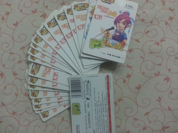 今天回家不小心打开了电脑桌的一个抽屉,翻出了一叠梦幻毁我童年的证据,2006年到2007年我所买的150点点卡(不完全统计),你们买到过这些封面么。下面上图,先给个侧写,你们猜是多少张