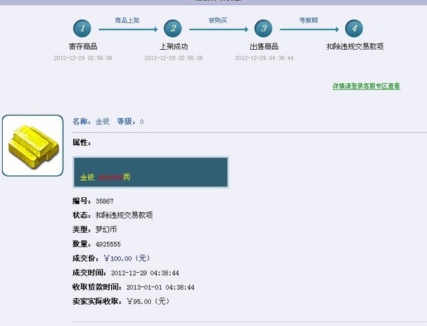 游戏币是我的个人财产交易成功,结果被扣,