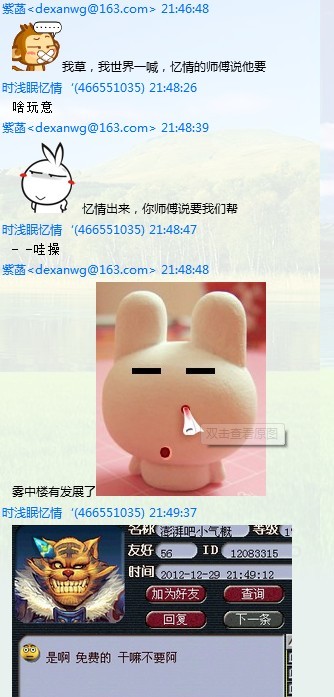 如今,我却不得不放弃这么久的努力,当一个人无奈到无能为力了,当一个小号面对170级的人时,当一个小号面对一群渡劫号时,当一个无助的少年因为过于信任高级号被诬告为骗子时,我只能放弃梦幻了。(后面我会附上整个事件的聊天记录,所有记录都是在雾中楼扣扣群里的)