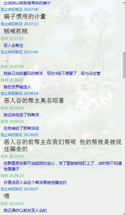 在这个时候,装备已经给他了,只是当时太信任他,我连交易图都忘了截,不过后面我会有证据证明装备有给他,一个170的人,还是恶人谷这样的大帮派帮主,恶人谷还是很有名的,我太轻信了他
