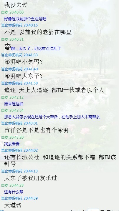 但是在这之前,我希望大家能知道:紫禁城最大的骗子不是那些在双带小号骗钱的人,这件事,会让你知道,在紫禁城,有一个人,或者说有一个团伙,他们是伪君子,他们比骗子更可恶,他们的等级是无数小号只能仰望也练不上去的,他们表面上是好人,他们把杀骗子挂在嘴里,他们让无数的小号信任他们,他就是恶人谷现任帮主:澎湃吧小气概,下面简称小气概