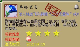 小二:是的,如果要说成就的事,我说一天都说不完,每个刷成就的孩子,心里都有吐不完的话,这是绝对的。刷的多了感觉也就来了,方法也来了,里面技术性的东西不多的。多试试几次就可以。适当安排时间,钱也是有必要花点的,号不要多极品,中等就行,身边有几个喜欢成就的朋友一起刷的话,相信你的成就也不会低。