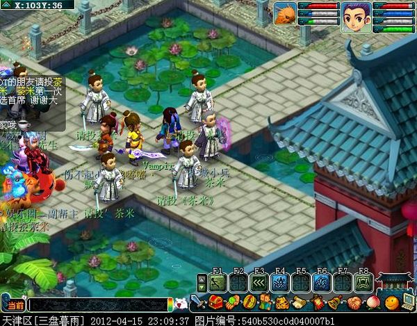 升级之后LZ发现门贡有2000+,于是策划了一次当首席的计划。 ,LZ开了N多个小号取名叫请投茶米 ,全站在DT门口开着自动喊话喊