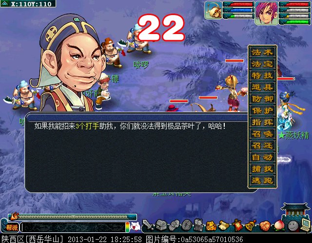 极品茶要求:尽快击杀两只藏茶猴,即主怪左右的变异长眉灵猴,不要让他逃跑。集中火力攻击,队伍中有大唐的话可以首回合破血一只,次回合横扫另一只,两回合两个变异长眉灵猴就飞掉了。猴军师为化生,一直推气过宫,如果火力不集中,很可能顾此失彼。战斗胜利后笔者129级测试获得约16万经验,9000钱,4点积分。