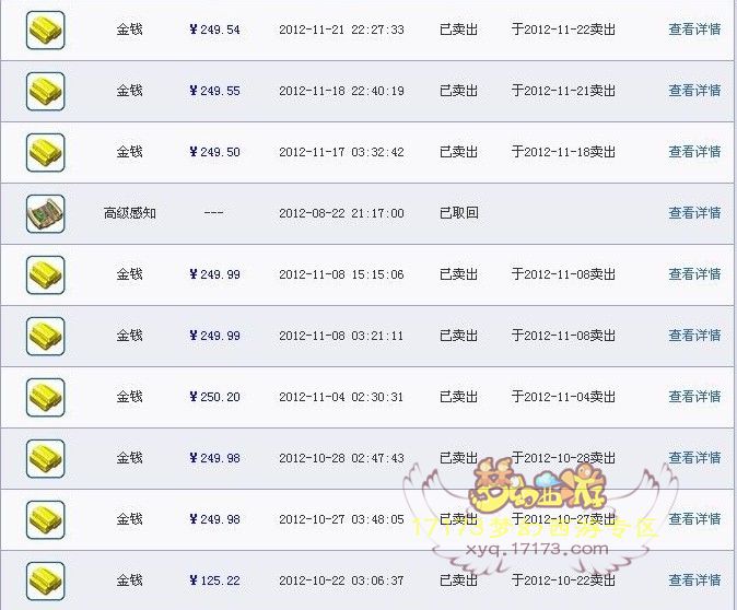 玩家的藏宝阁一年来的卖钱记录,都是自己平时没事玩玩,挂挂机赚出来的。不靠梦幻吃饭,只当它是个休闲娱乐赚点小外快的游戏。至于神马说封号的去死吧,我们又不是那些职业打金队的。