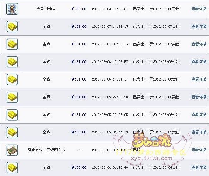 玩家的藏宝阁一年来的卖钱记录,都是自己平时没事玩玩,挂挂机赚出来的。不靠梦幻吃饭,只当它是个休闲娱乐赚点小外快的游戏。至于神马说封号的去死吧,我们又不是那些职业打金队的。
