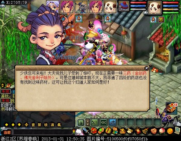 找到陈母会出现两个选择,找药或者是疗伤(战斗)。找药的比较方便,花钱省点时间,推荐高等级急于刷经验的童鞋直接给三药吧,除了金疮和佛光之外都可以,没有相应的品质要求。