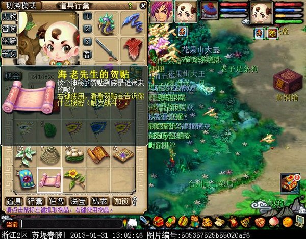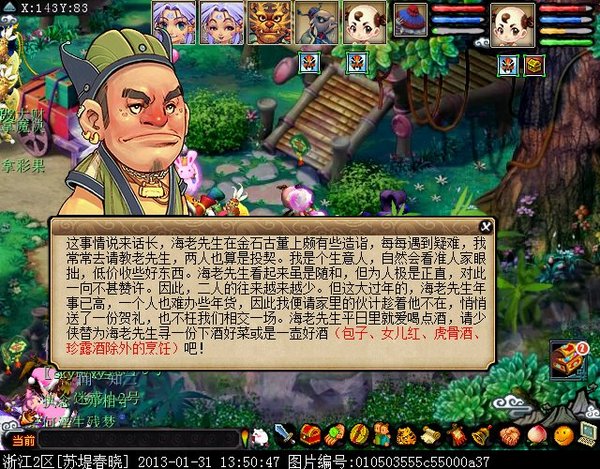 找到长寿村的海老先生,得到任务物品“海老先生的贺贴”。为了接下来,比较方便,也可以在海老先生的地方插旗子一枚。