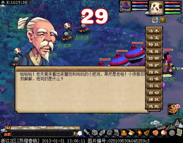 找到慧觉和尚后,回复海老先生,切入战斗,去掉多余字的鸭子,主怪会跑掉,但是也可以把他们都飞光,一般3-4回合能够解决。