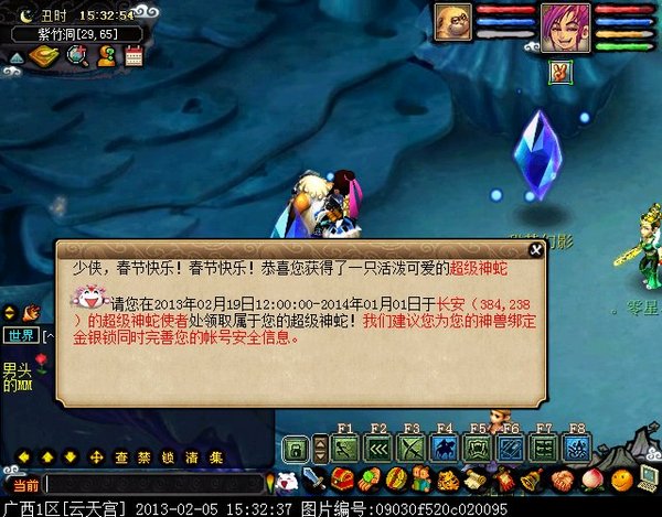正常来说,一个玩家中一个神兽,都是属于祖上冒青烟的表现,但是云天宫的这个玩家居然在蛇年连中2条超级神蛇,这样的运气恐怕是10年来梦幻西游头一个吧。