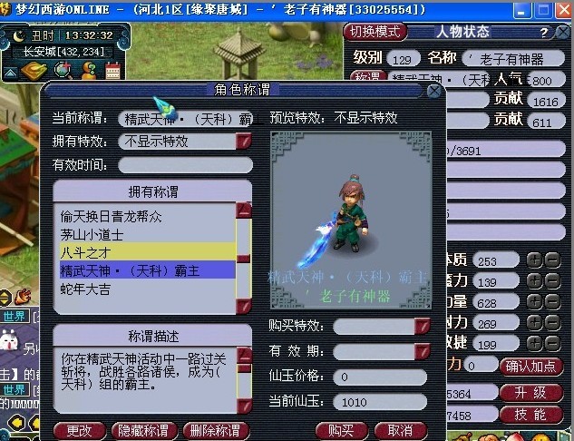 天科双料冠军,缘聚唐城主力大唐卖号,一身简易装备是亮点
