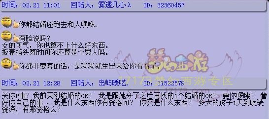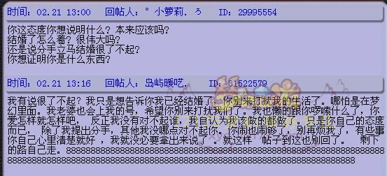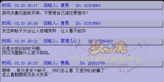 姑苏城2013年最大劲爆话题,一个59玩家在三界论坛控诉自己前游戏老公把自己肚子搞大后不负责的行为。结果居然牵扯出了一段已婚人士游戏**,结果还有喜当爹的可能性!这难道再演梦幻西游版的《回村的诱惑》吗?